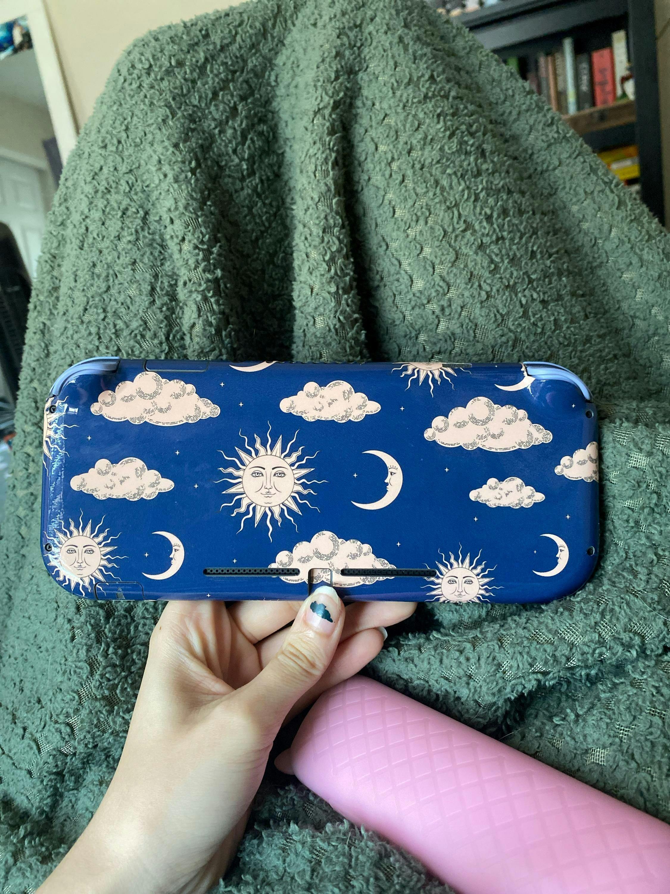 The Clouds Blue Zodiac Moon design adds a magical and dreamy aesthetic, making your Nintendo Switch Lite stand out with an ethereal night sky theme.
