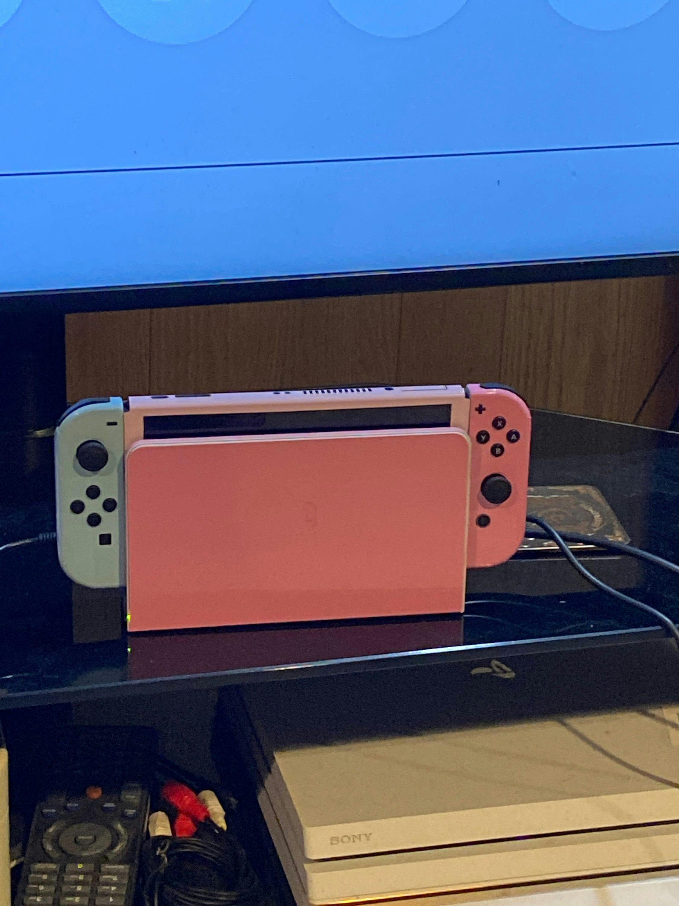 The Pink Pastel Colorwave Color Blocking design adds a soft and playful aesthetic, making your Nintendo Switch OLED stand out.